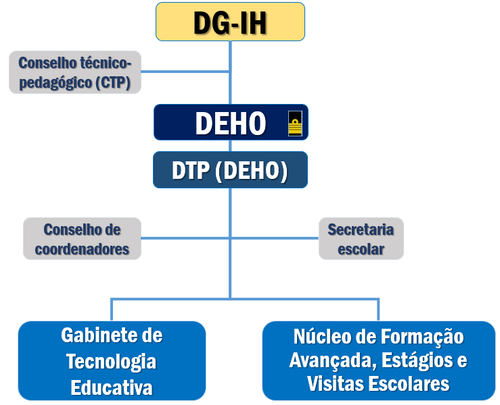 Established in 1979—initially affiliated with the IH but not part of its formal structure—the EHO is now an integral component of the IH's organizational structure. According to Decree-Law No. 230/2015 of October 12, the EHO is responsible for "conducting courses aimed at training technicians necessary for the hydrographic and oceanographic activities of the IH or, related to these, of interest to the Navy or the Country." The EHO reports to the Director-General of the IH, while also operating under the functional authority of the Navy Personnel Superintendent in matters related to training.